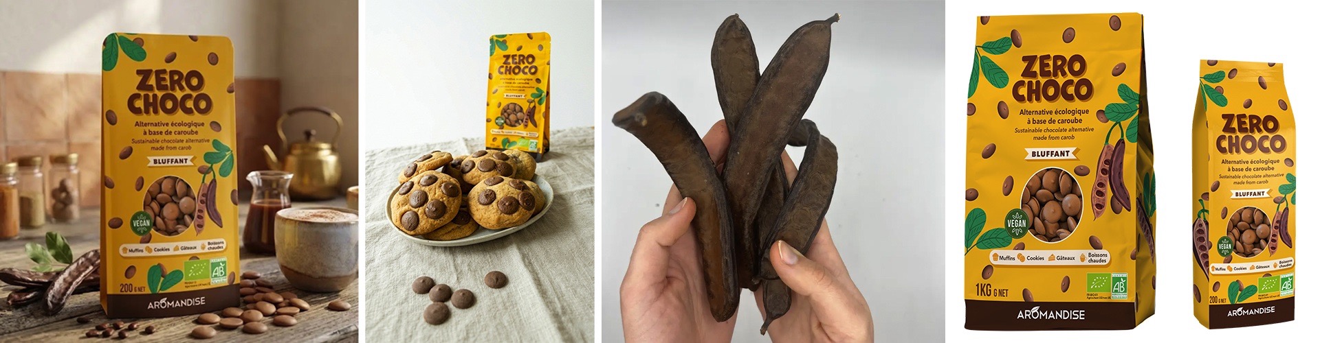 Aujourd’hui, les procédés de transformation permettent d’aller bien au-delà d’une simple alternative. L’innovation ZERO CHOCO, développée par la marque montpelliéraine Aromandise, en est une illustration particulièrement réussie. Élaboré à partir de pulpe de caroube issue d’une démarche d’upcycling, ce produit se présente sous forme de pistoles, faciles à utiliser en pâtisserie ou à consommer telles quelles.