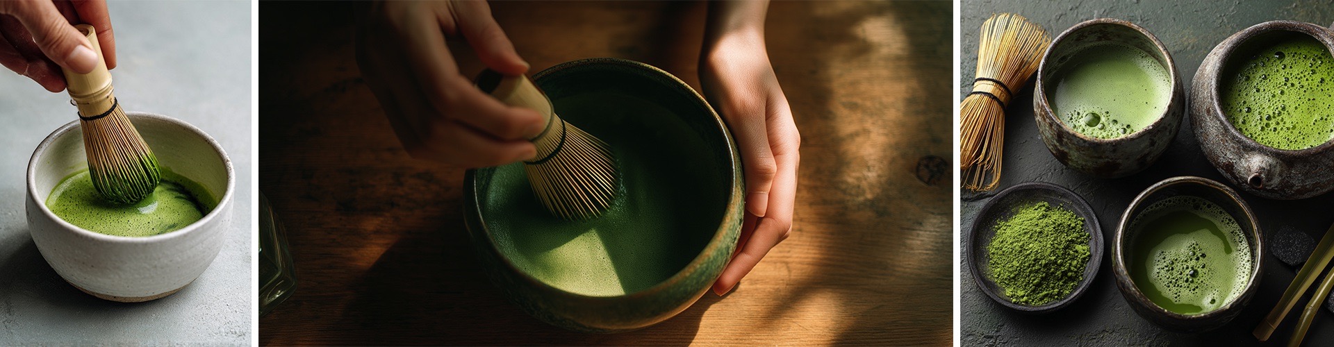 • Enfin, le Matcha culinaire qui est un grade inférieur destiné aux lattes, smoothies, et pâtisseries, où son goût plus fort et légèrement plus amer se marie bien avec d’autres ingrédients.