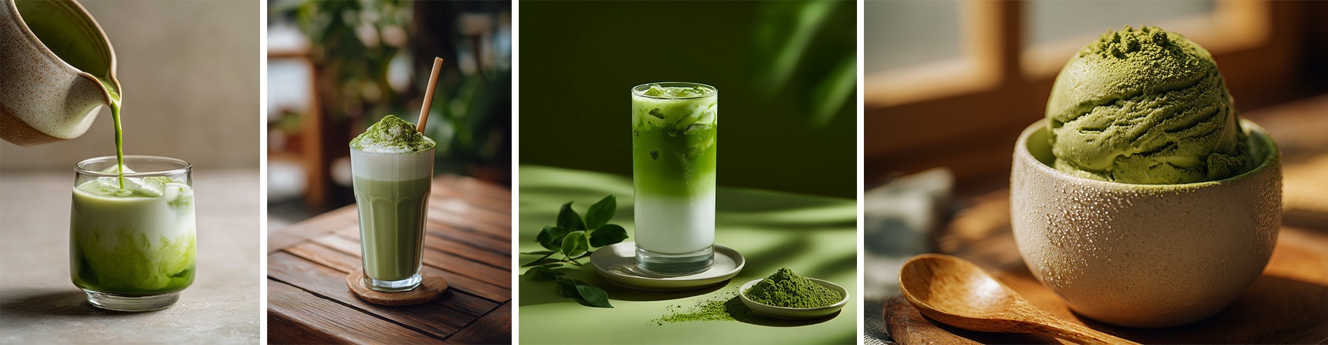 • La diversification culinaire a également contribué à la croissance exponentielle du Matcha qui n’est plus seulement une boisson consommée pure. Sa saveur unique, à la fois terreuse et riche en umami, en fait un ingrédient polyvalent pour les lattes, les desserts, les smoothies et même les plats salés, élargissant ainsi son accessibilité et son attrait (Matcha latté – Matcha bubble tea – Rose Matcha latte – Matcha mojito).