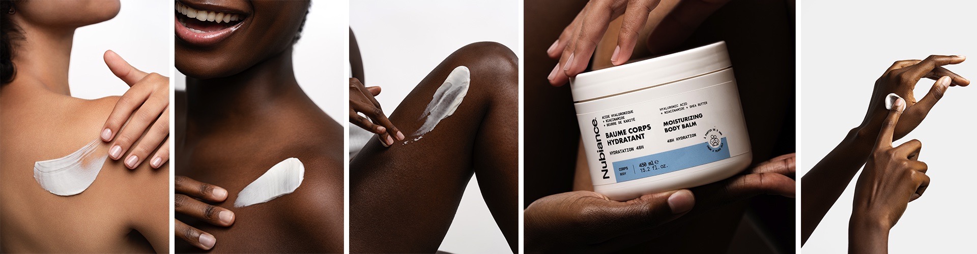 1. Le Baume Corps Hydratant de la marque NUBIANCE qui associe acide hyaluronique, niacinamide, beurre de karité et extrait de muguet du Japon, reconnu pour ses propriétés apaisantes et rééquilibrantes du microbiote cutané. Une action à la fois en surface et en profondeur, efficace dès les premières applications. Un banger absolu !