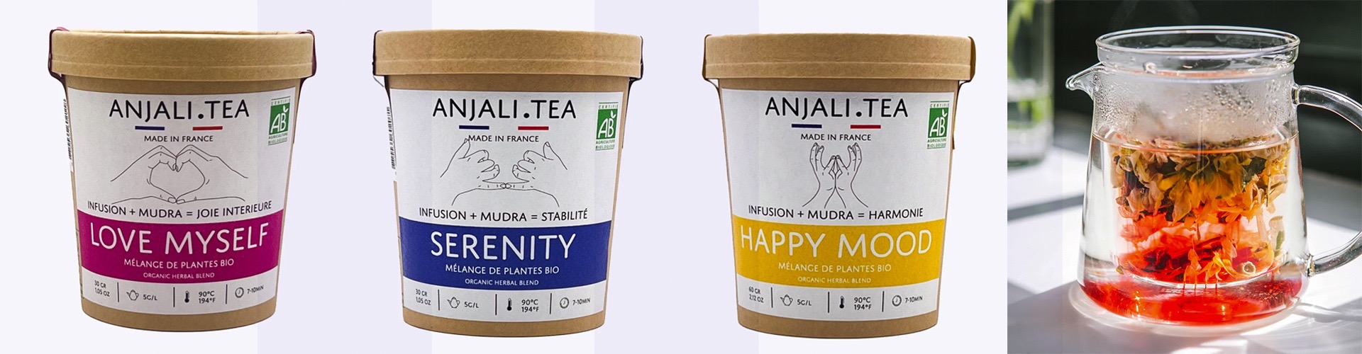 Il s’agit de celles de la marque française Anjalitea, créée par Sophie Giran, passionnée de yoga et formée à la réflexologie plantaire. Cette exploration l’a amenée à découvrir les profonds bienfaits des mudras, ou yoga des mains.