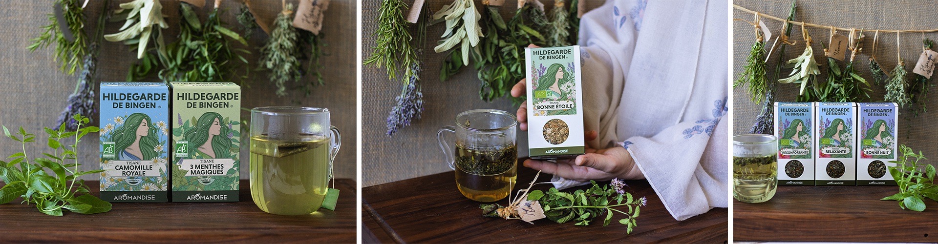 Avant-dernière nouveauté :  la nouvelle gamme de tisanes d’Hildegarde de Bingen de la marque montpelliéraine Aromandise.