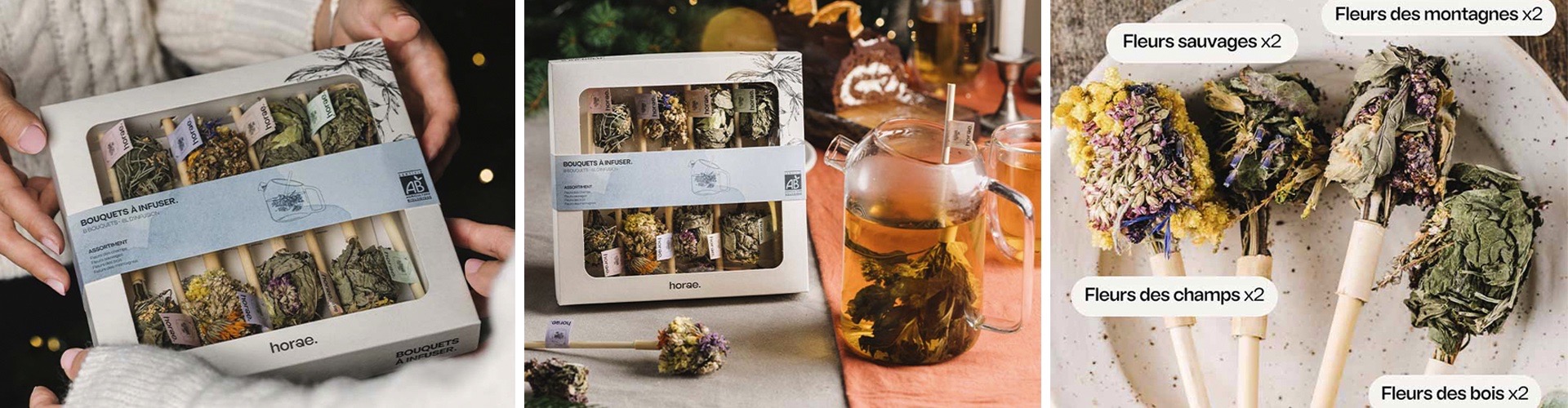 Je vous recommande vivement le coffret 8 bouquets à infuser bio Horae qui est vendu à 39,90 €. C’est une très belle idée de cadeaux de Noël.